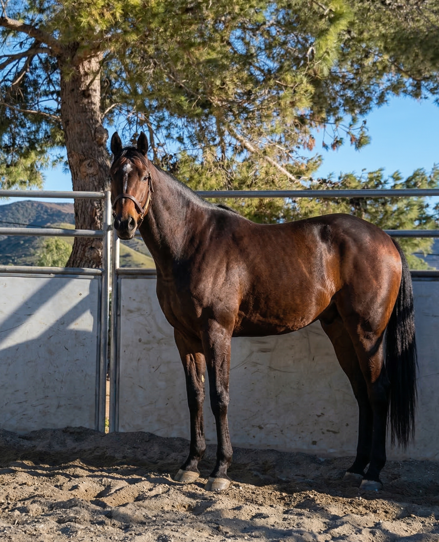 P Town Prancer, a stunning sport horse prospect by Sir Prancealot (IRE) out of an In Excess (IRE) mare. This young gelding possesses a rare blend of European elegance and legendary California foundation blood to the aftercare market. Retiring sound after just six starts, he stands a substantial 16.2 hh with the scope and "uphill" frame desired for competitive dressage, eventing, or the hunter ring. As a new arrival, Prancer is currently decompressing and showing a sensible, professional demeanor. With his clean slate, impressive size, and athletic pedigree, he is an ideal candidate for an educated rider looking to develop a high-quality athlete from the ground up.